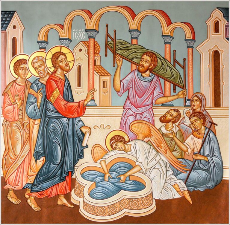Πρώτον, ο Παραλυτικός δεν είχε κάποιον άνθρωπο να τον σπρώξει μέσα στην κολυμβήθρα για να θεραπευθεί. Είναι πράγματι οδυνηρόν να μην έχει, κάποιος που υποφέρει, έναν άνθρωπο να τον φροντίζει. Γι’ αυτό ο Χριστός μας είπε ότι όταν φροντίζουμε και βοηθούμε κάποιον άνθρωπον που είναι αβοήθητος κι έχει την ανάγκη μας, είναι ως να διακονούμε Αυτόν κι έτσι γινόμαστε άξιοι της Βασιλείας των Ουρανών.
