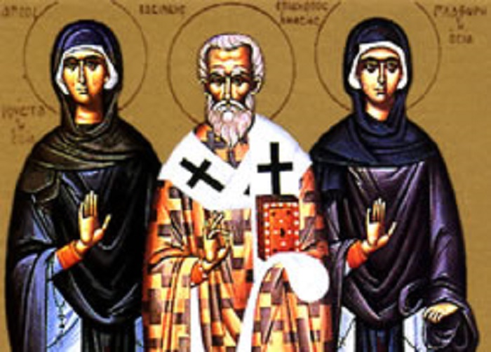 Η Αγία πήγε προς την Ανατολή, όπου περιπλανήθηκε σε πολλούς τόπους. Τελικά κατάληξε στην Αμάσεια και παρουσιάστηκε στον επίσκοπο της πόλης αυτής Βασιλέα (εορτάζει στις 26 Απριλίου), στον όποιο παρέδωσε τα χρήματα της για την ανέγερση Ναού, και απεβίωσε ειρηνικά στην Αμάσεια.