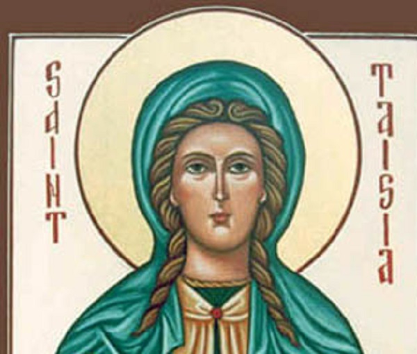 Τότε η Ταϊσία έπεσε σε θλίψη μεγάλη, αλλά και η Εκκλησία μπορεί να έχασε ένα πρόβατο, όμως δεν έπαψε να το αναζητεί. Όταν λοιπόν ο Παφνούτιος από τη Σιδώνα έμαθε την ψυχική της κατάσταση, προσευχήθηκε και αποφάσισε να εργαστεί για την ψυχή της. Και δεν αστόχησε. Την επισκέφθηκε και με τη χάρη του Θεού πέτυχε το θαύμα! Καυτά δάκρυα μετανοίας κύλησαν στα μάγουλα της Ταϊσίας. Πέταξε όλα της τα πλούτη στη θάλασσα, διότι το τίμημα της ατιμίας δεν άξιζε να χρησιμοποιηθεί στο Ιερό έργο της ελεημοσύνης.