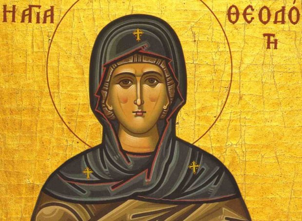 Ὡς δῶρον ἐκλεκτόν, Θεοδότη θεόφρον, προσήγαγες Θεῶ, τοὺς ἐνθέους βλαστούς σου, σὺν τούτοις γὰρ ἠγώνισαι, ἱερῶς ἐναθλήσασα, μεθ’ ὧν πρέσβευε, ὑπὲρ ἠμῶν τῷ Κυρίῳ, δοῦναι ἄφεσιν, ἁμαρτιῶν ἠμὶν πάσι, καὶ βίου διόρθωσιν.