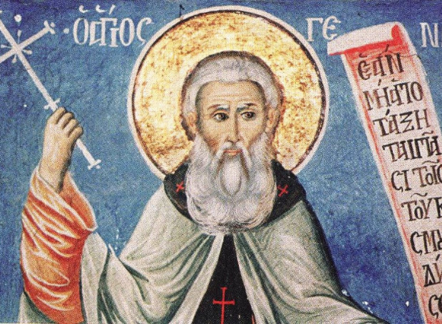 Ἀρετῶν ταὶς ἰδέαις κατακοσμούμενος, τῆς Ἐκκλησίας ἐδείχθης Ἀρχιεράρχης σοφός, καὶ ποιμὴν ἀληθινός, πάτερ Γεννάδιε, ὡς θεράπων τοῦ Χριστοῦ, καὶ ὁσίων κοινωνός, ἐν πάσῃ δικαιοσύνη. Καὶ νῦν δυσώπει ἀπαύστως, ἐλεηθήναι τᾶς ψυχᾶς ἠμῶν.
