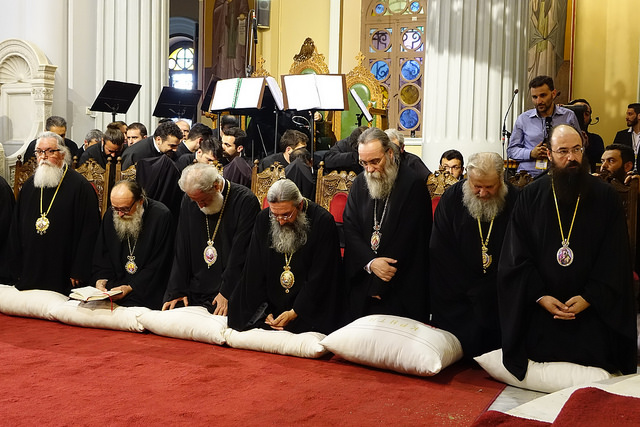 2016 σαν σήμερα 19 Ιουνίου Θεία Λειτουργία με τους Προκαθήμενους των Ορθοδόξων Εκκλησιών που βρίσκονταν στην Κρήτη για την Αγία και Μεγάλη Σύνοδο τελέσθηκε στον ιερό ναό Αγίου Μηνά Ηρακλείου. Το μυστήριο της Θείας Ευχαριστίας τέλεσε ο Οικουμενικός Πατριάρχης κ.Βαρθολομαίος και συλλειτούργησαν οι εννέα Προκαθήμενοι στέλνοντας Μήνυμα Ενότητας.
