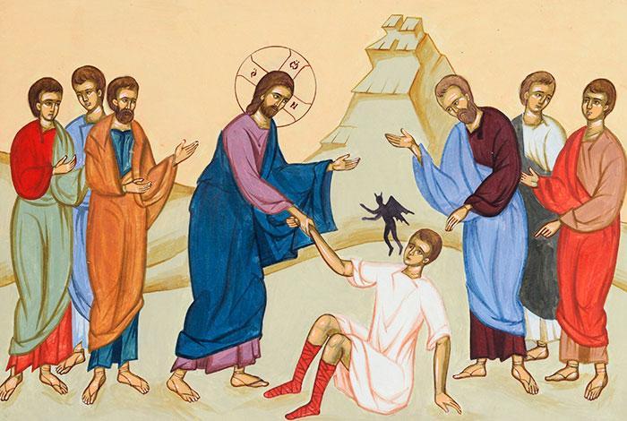 Το σημερινό Ευαγγέλιο μας λέγει για το θαύμα του Χριστού, που θεράπευσε το δαιμονισμένο παιδί. Ο διάβολος θέλει να ξεκόψουμε από το Θεό και έτσι να χάσουμε τη σωτηρία μας, που είναι και η αληθινή ζωή μας. Στην περίοδο της Μεγάλης Σαρακοστής ο άνθρωπος αγωνίζεται για να συντρίψει με τη βοήθεια του Θεού την αμαρτία. Μόνον έτσι μπορούμε να πλησιάσουμε τον Κύριο, που είναι ο Λυτρωτής και ο Σωτήρας μας.