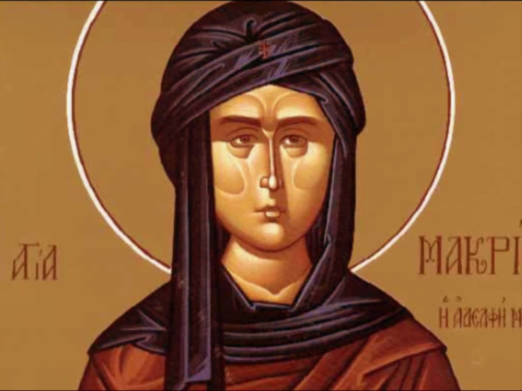 Η Αγία Μακρίνα, που ο Θεός την είχε προικίσει με πολλά πνευματικά και σωματικά χαρίσματα, ήταν η μεγαλύτερη αδελφή του Μεγάλου Βασιλείου και του Γρηγορίου Νύσσης. Ανατράφηκε σύμφωνα με τις επιταγές του Ευαγγελίου, από την ευσεβέστατη μητέρα της Εμμέλεια. Όταν μεγάλωσε, αφοσιώθηκε στην αγαθοεργία και στην ανατροφή των αδελφών της, που έπαιξε καθοριστικό ρόλο στη μετέπειτα πνευματική τους πορεία. Η Μακρίνα ήταν μνηστευμένη, αλλά ο μνηστήρας της πέθανε. Τότε, μαζί με τη μητέρα της, αποσύρθηκε σε γυναικεία μονή στον Πόντο, κοντά στον ποταμό Ίρη. Εκεί κοντά μόναζε και ο αδελφός της Μέγας Βασίλειος. Στη μονή πέρασε τη ζωή της με τη μελέτη των Γραφών, την προσευχή, και προπάντων με αγαθοεργίες. Διότι πάντα είχε στο μυαλό της το λόγο του Θεού, που προτρέπει στους ανθρώπους, «ἀγαθοεργείν, πλουτεὶν ἐν ἔργοις καλοίς, εὐμεταδότους εἶναι, κοινωνικούς, ἀποθησαυρίζοντας ἑαυτοὺς θεμέλιον καλὸν εἰς τὸ μέλλον, ἶνα ἐπιλάβωνται τῆς αἰωνίου ζωῆς». ( Α’ προς Τιμόθεον, στ’ 18,19). Δηλαδή, να αγαθοεργούν, να γίνονται πλούσιοι σε καλά έργα, να δίνουν πρόθυμα και σε άλλους τα αγαθά τους, να είναι απλοί και καταδεκτικοί, και έτσι να αποταμιεύουν για τον εαυτό τους στέρεο θεμέλιο στο μέλλον, για να αποκτήσουν την αιώνια ζωή. Μ’ αυτόν τον τρόπο και η Αγία Μακρίνα έζησε και τελείωσε τη ζωή της.