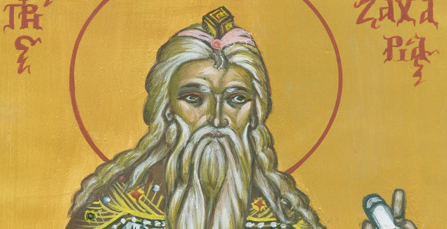 Τὴν κλῆσιν κατάλληλον, δείξας τοῖς ἔργοις σοφέ, ταμεῖον ἐπάξιον, τῆς ἐπιπνοίας Θεοῦ, Ζαχαρία γεγένησαι· ἔχων γὰρ ἐν τῷ βίῳ, συλλαλοῦντας Ἀγγέλους, ὤφθης τῶν ἐσομένων, θεηγόρος Προφήτης. Καὶ νῦν ἡμῶν τὰς αἰτήσεις, ἄνωθεν πλήρωσον.