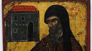 Η πρώτη εικόνα που σας παρουσιάζουμε, αποτελεί την παλαιότερη εικόνα του Αγίου Ιγνατίου. Φιλοτεχνήθηκε πιθανόν κατά τη διάρκεια της ζωής του, όπως φαίνεται από το ότι δεν καταγράφεται το όνομα του αγίου, αλλά μόνο η επιγραφή «ο κτύτωρ». Το χαρακτηριστικό μάλιστα της επιγραφής είναι ότι, ενώ ο άγιος Ιγνάτιος είναι και κτήτωρ (= ιδιοκτήτης) και κτίτωρ (= ιδρυτής) της Μονής, ο αγιογράφος τον ονομάζει «κτύτορα» (με ύψιλον), μη μπορώντας ίσως να δώσει απάντηση στο δίλημμα αν θα επιγράψει την εικόνα ως «ο κτήτωρ» ή «ο κτίτωρ».