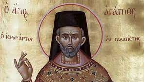 Στις 18 Αυγούστου 1752 μ.Χ. ο ενάρετος και σοφός «Αρχιμανδρίτης τού Παναγίου Τάφου, ο Μεγάλος Διδάσκαλος τού Γένους, ο σοφώτατος Σχολάρχης της Αθωνιάδος Αγάπιος ο Αγιοταφίτης φονεύεται μαρτυρικώς έξω από την Θεσσαλονίκη, πλησίον της Θέρμης, από κακοποιούς Γενιτσάρους καθώς ερχόταν από την Γαλάτιστα προς την Θεσσαλονίκην».