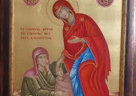 Κάποια στιγμή τον πήρε ένας ύπνος ελαφρός. Νοιώθει τότε δύο χέρια να τον ακουμπούν και να ψηλαφούν τις κόγχες των ματιών του. Ήταν τόσο αισθητό, ώστε ξύπνησε αμέσως και αναρωτιόταν ποιος να τον είχε αγγίξει. Και τότε Βλέπει μπροστά του μία γυναίκα λαμπροφορεμένη και λουσμένη στο φως. Στάθηκε λίγο κι ύστερα εξαφανίστηκε. Γυρίζει ο Στέφανος και βλέπει τα καντήλια αναμμένα. Ξυπνάει τη μητέρα του και τη ρωτάει ποιος άναψε τα καντήλια και εκείνη του λέει να σωπάσει νομίζοντας πως το παιδί της ονειρεύεται. Όταν όμως ο Στέφανος επέμενε, η μητέρα του ανασηκώθηκε και κοίταξε με ανησυχία και λαχτάρα το πρόσωπό του και έζησε ένα ολοζώντανο θαύμα: οι κόγχες του παιδιού της στολίζονταν από δύο γαλανά μάτια, ενώ, πριν την τύφλωση, τα μάτια του Στέφανου ήταν μαύρα!