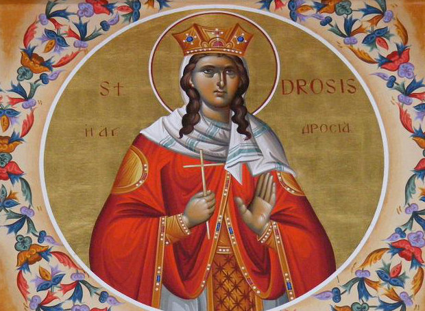 Η Αγία Δροσίδα, ήταν κόρη του αυτοκράτορα Τραϊανού (98-117), ο οποίος βασάνιζε και θανάτωνε πολλούς χριστιανούς, των οποίων τα λείψανα άφηνε άταφα.