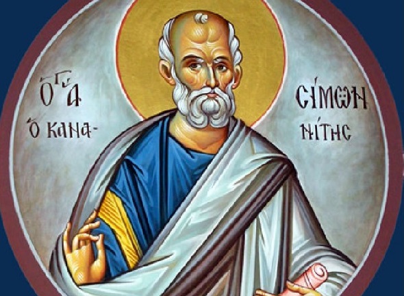 Ο Άγιος Απόστολος Σίμων ονομάσθηκε ζηλωτής, λόγω της θέρμης και του ζήλου με τον οποίο κήρυττε το λόγο του Ευαγγελίου. Καταγόταν από την Κανά της Γαλιλαίας και είναι γνωστός ως Σίμων ο Κανανίτης (ή Ναθαναήλ ή Βαρθολομαίος – υιός του Θολομαίου). Μετά την ανάληψη του Χριστού και τη χάρη της Πεντηκοστής, ο Σίμων επιδόθηκε σε ένα ευρύ ιεραποστολικό έργο. Δίδαξε το Ευαγγέλιο στην Περσία, όπου αφού γκρέμισε το μύθο της πολυθεΐας, φανέρωσε σε πλήθος κόσμου το φως της Ευαγγελικής αλήθειας. Στη συνέχεια μετέβη στην Αφρική, όπου κήρυξε το ζωογόνο Λόγο του αληθινού Θεού και Σωτήρος, από την Αίγυπτο έως τη Μαυριτανία. Ο τελευταίος τόπος της θαυμαστής ιεραποστολικής του δράσης ήταν η Βρετανία. Εκεί αφού δίδαξε στο λαό τη χριστιανική πίστη, συνελήφθη από τους ειδωλολάτρες βασανίστηκε και υπέστη σταυρικό θάνατο.