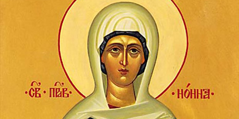 Η Αγία Νόννα, ήταν ευσεβής, αγνή, με θερμή πίστη, με διαμαντένιο χαρακτήρα. Ο σύζυγός της, Γρηγόριος (βλέπε 1 Ιανουαρίου), είχε πέσει στην αίρεση των Υψισταρίων, ο οποίος δεχόταν τον Ύψιστο μονοπρόσωπο και δεν πίστευε στην Τριαδικότητά του. Η Αγία Νόννα με τις προσευχές της και την υπομονή της, επανέφερε τον σύζυγό της στο δρόμο του Θεού, ο οποίος εξελέγχθηκε σε έναν από τούς πιο λαμπρούς επισκόπους της Χριστιανικής Πίστης.