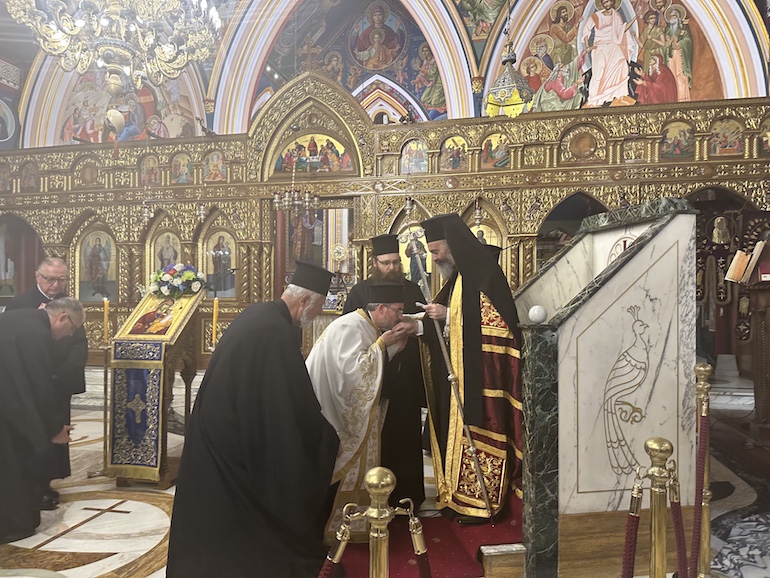 Στο τέλος της Ακολουθίας, ο Αρχιεπίσκοπος χαιρέτισε όλους τους πιστούς που εκκλησιάστηκαν, δίδοντάς τους από μια αναμνηστική εικόνα, ενώ στη συνέχεια ακολούθησε κέρασμα στην αίθουσα της Ενορίας.