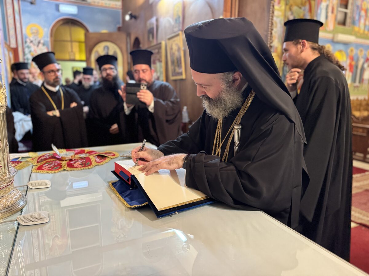 Τον Σεβασμιώτατο προσφώνησαν εγκαρδίως τόσο ο π. Ευστάθιος, όσο και ο διάδοχός του, π. Λεωνίδας, καταθέτοντας αμφότεροι την αγάπη και τον σεβασμό τους και ευχαριστώντας τον για την ανύστακτη μέριμνά του για τον φιλόχριστο λαό της πέμπτης ηπείρου. «Εύχομαι μέσα από την καρδιά μου ο Θεός να σας χαρίζει υγεία, δύναμη και κουράγιο, για να προχωρήσετε το έργο που κάνετε», ανέφερε, μεταξύ άλλων, ο π. Ευστάθιος, διαβεβαιώνοντας πως με όσες δυνάμεις διαθέτει θα συνεχίσει να υποστηρίζει το έργο και το όραμα του Ποιμενάρχου του. «Σας ευχαριστούμε για όσα κάνατε, κάνετε και συνεχίζετε να κάνετε για εμάς», σημείωσε από την πλευρά του ο π. Λεωνίδας, ο οποίος, εκ μέρους όλης της Ενορίας, προσέφερε στον Αρχιεπίσκοπο ως αναμνηστικά δώρα ένα αρχιερατικό εγκόλπιο και έναν επιστήθιο σταυρό.