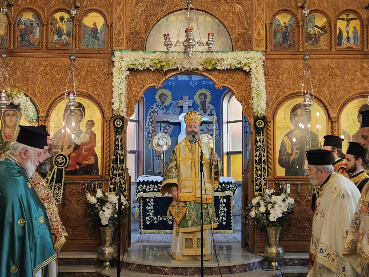 Ενώπιον πλήθους ευσεβών πιστών, οι οποίοι συνέρρευσαν με ευλάβεια για να προσκυνήσουν την ιερά Εικόνα της Προστάτιδος της Ενορίας τους και το απότμημα του ιερού Λειψάνου Της, το οποίο θησαυρίζεται στον Ι. Ναό του Bankstown, ο Σεβασμιώτατος περιέγραψε γλαφυρά το γενόμενο κατά το έτος 451 μ.Χ. θαύμα της Αγίας Ευφημίας, όταν οι Πατέρες που συμμετείχαν στη Δ’ Οικουμενική Σύνοδο τοποθέτησαν, στη λάρνακα με το λείψανό Της, δύο τόμους με τις θέσεις και τη διδασκαλία των Ορθοδόξων και των Μονοφυσιτών. Όταν ανοίχτηκε η σφραγισμένη λάρνακα, ο μεν τόμος των Ορθοδόξων βρισκόταν στο στήθος και την αγκαλιά της Αγίας, ο δε των αιρετικών στα πόδια της.