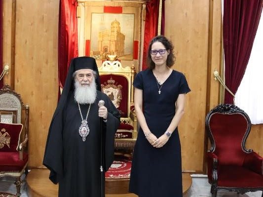 Ἡ Ἐξοχωτάτη Ἀντιπρόσωπος τῆς Οὑγγαρίας εἰς τήν Ραμάλλαν, κ. Rita Herenescar, συνοδευομένη ὑπό τῆς ἀναπληρωτρίας αὐτῆς, ἐπραγματοποίησε σήμερον ἐπίσκεψιν εἰς το Πατριαρχεῖον Ἱεροσολύμων, γενομένη δεκτή ὑπό τῆς Α.Θ.Μ. τοῦ Πατρός ἡμῶν καί Πατριάρχου Ἱεροσολύμων κ.κ. Θεόφιλον Γ’. Εἰς τήν συνάντησιν ταύτην ὑπεγραμμίσθη ἡ σημασία τῆς συνεργασίας διά τήν ἐνίσχυσιν τῶν ἀνθρωπιστικῶν προσπαθειῶν εἰς τήν Γάζαν.