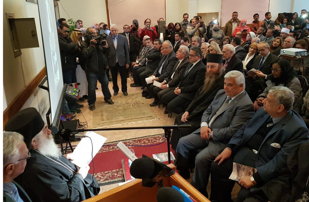 Ο Υπουργός Αρχαιοτήτων της Αιγύπτου Χάλιντ Ανάνι τόνισε τη σημασία της Βιβλιοθήκης της Μονής καθώς επίσης έκανε μία εξαιρετική αναφορά στο ψηφιδωτό της Μεταμόρφωσης του Σωτήρος που υψώνεται εκεί που συνήθως βρίσκεται η απεικόνιση της Παναγίας Πλατυτέρας σε όλες σχεδόν τις εκκλησίες, αποτελώντας εδώ μία ξεχωριστή πρωτοτυπία, όχι μόνο για το θέμα του, αλλά κυρίως γιατί καταλαμβάνει μία ιστορία 15 αιώνων και το οποίο καλύπτει μία έκταση 46 τετραγωνικών μέτρων, και το οποίο έχει κατασκευαστεί από περίπου 500.000 ψηφίδες, και για το οποίο το έργο ανακαίνισης ξεκίνησε το 2005 για να ολοκληρωθεί 12 χρόνια αργότερα, το 2017! Σημείωσε επίσης ότι ο χώρου αυτός του Σινά είναι ο ιερός χώρος των τριών μονοθεϊστικών θρησκειών, των Χριστιανών, των Μουσουλμάνων και των Εβραίων, ευχαριστώντας ιδιαίτερα τον Αρχιεπίσκοπο Σινά κ. Δαμιανό για το τεράστιο έργο που επιτελεί. Η εκδήλωση ολοκληρώθηκε με την οπτική παρουσίαση των έργων από τον Καθηγητή του Πανεπιστημίου Πατρών κ. Πέτρο Κουφόπουλο.