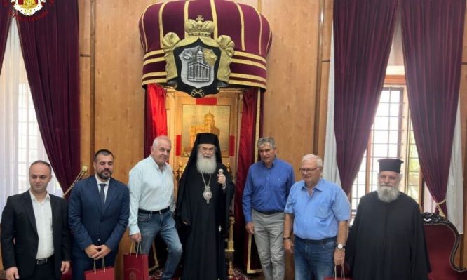 Ὁ Μακαριώτατος προσέφερεν εἰς αὐτούς ἐπάργυρον πίνακα τῆς πόλεως τῆς Ἱερουσαλήμ καί ηὐχήθη εἰς αὐτούς καλήν ἐπιτυχίαν εἰς τόν ποδοσφαιρικόν ἀγῶνα τῆς ὁμάδος αὐτῶν τό ἑσπέρας τῆς σήμερον μετά τῆς ποδοσφαιρικῆς ὁμάδος Μπεϊτάρ τοῦ Ἰσραήλ.