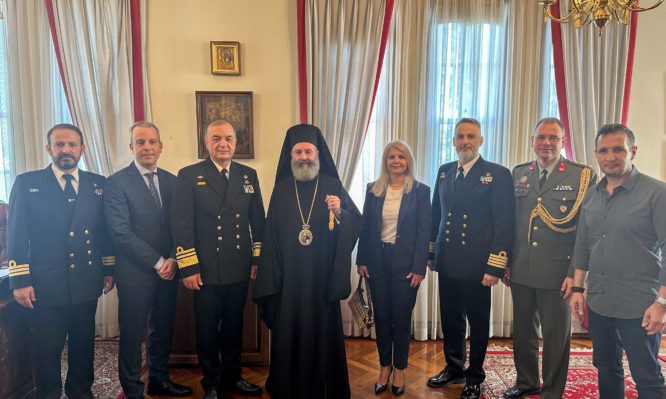 Έλληνες Αξιωματικούς, μέλη Αντιπροσωπείας του Γενικού Επιτελείου Εθνικής Άμυνας (ΓΕΕΘΑ) της Ελλάδος, υποδέχθηκε ο Σεβασμιώτατος Αρχιεπίσκοπος Αυστραλίας κ.κ. Μακάριος, την Παρασκευή, 17 Μαΐου, στην έδρα της Ιεράς Αρχιεπισκοπής στο Σύδνεϋ.