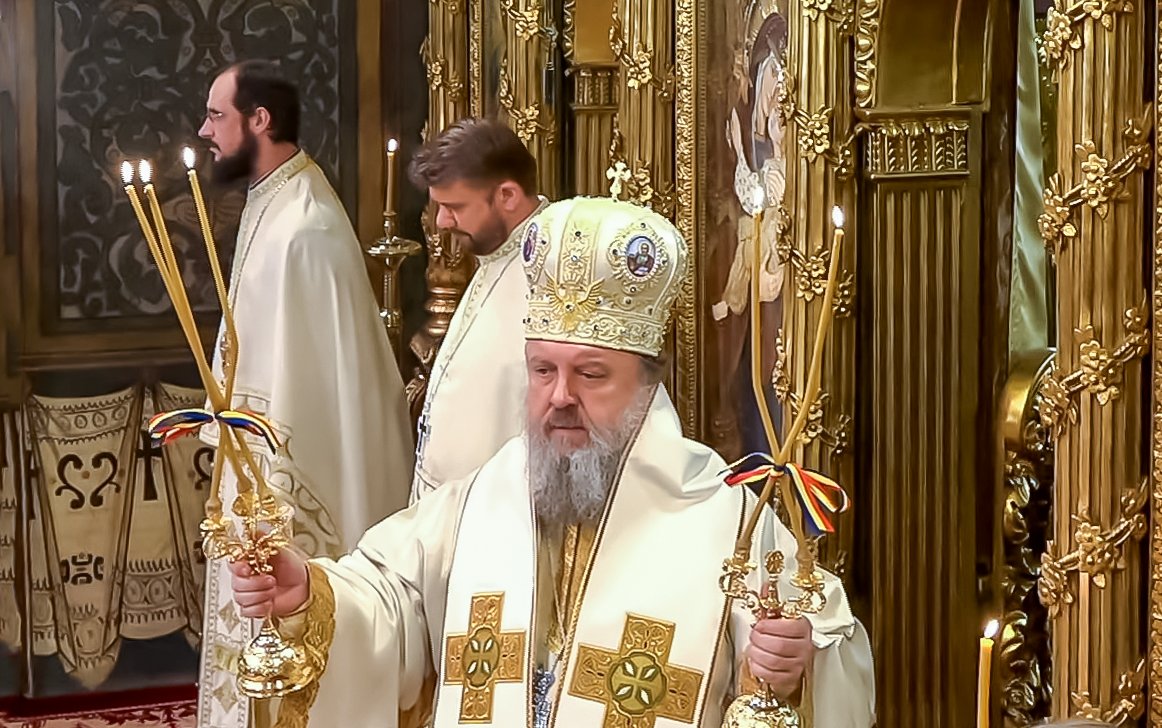 Ο Σεβασμιώτατος Πατέρας Timotei Prahoveanul, Βικάριος Επίσκοπος της Αρχιεπισκοπής Βουκουρεστίου, τέλεσε τη Θεία Λειτουργία την Κυριακή στον Πατριαρχικό Καθεδρικό Ναό στο Βουκουρέστι, πλαισιωμένος από χορεία ιερέων και διακόνων του ναού.