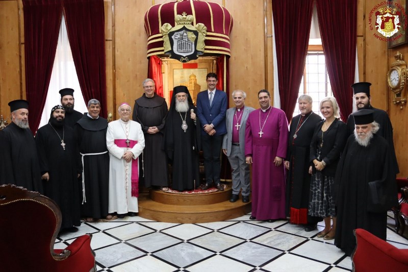 «Σήμερον, Τρίτην 3ην Ὀκτωβρίου 2023, ὁ Μακαριώτατος Πατήρ ἡμῶν καί Πατριάρχης Ἱεροσολύμων κ.κ. Θεόφιλος ἐδέχθη τόν ἐπί κεφαλῆς τοῦ Γραφείου Ἀντιπροσωπείας τῆς Ε.Ε. εἰς τήν Δυτικήν Ὄχθην καί τήν Λωρίδα τῆς Γάζης κ. Alexandre Stutzmann μετά τῶν Ἀρχηγῶν τῶν Ἐκκλησιῶν καί τούς ἐκπροσώπους αὐτῶν.
