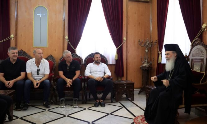 Αντιπροσωπεία της ομάδας εκμεταλλεύτηκε την παρουσία της στο Ισραήλ συνδυάζοντας την με επίσκεψη στους Αγίους Τόπους και στον Πατριάρχη Ιεροσολύμων Θεόφιλο.