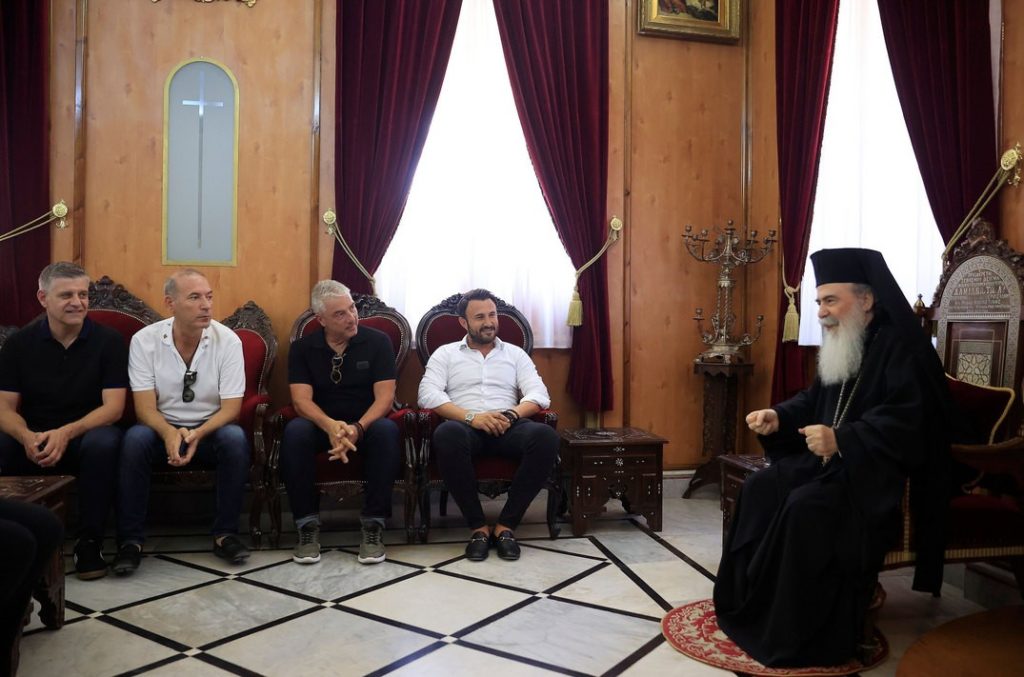 Αντιπροσωπεία της ομάδας εκμεταλλεύτηκε την παρουσία της στο Ισραήλ συνδυάζοντας την με επίσκεψη στους Αγίους Τόπους και στον Πατριάρχη Ιεροσολύμων Θεόφιλο.