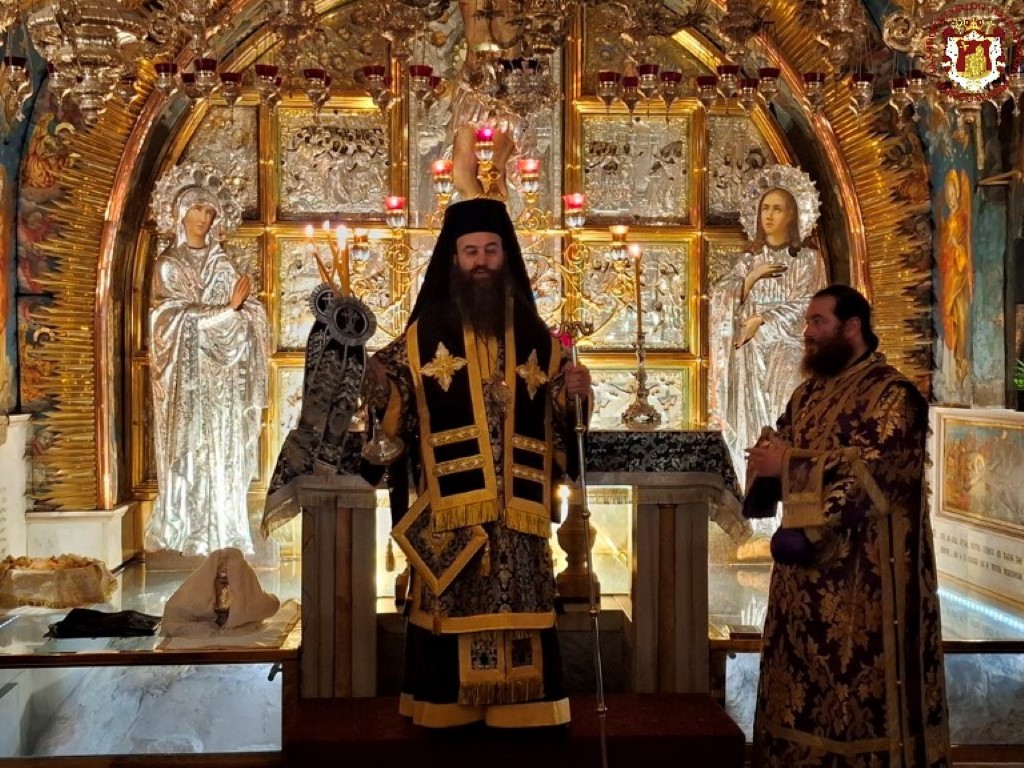 Β.  Θεία Λειτουργία τῶν Προηγιασμένων ἐτελέσθη ὡσαύτως ἐπί τοῦ Φρικτοῦ Γολγοθᾶ ὑπό τοῦ Γέροντος Σκευοφύλακος Σεβασμιωτάτου Ἀρχιεπισκόπου Ἱεραπόλεως κ. Ἰσιδώρου τῇ συμπροσευχῇ μοναζουσῶν καί  μεγάλου ἀριθμοῦ προσκυνητῶν.