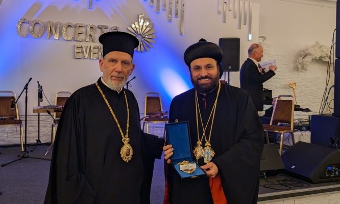 Κατά την διάρκεια της δεξιώσεως, ο Σεβασμιώτατος κ. Κλεόπας προσέφερε στο νέο Επίσκοπο αρχιερατικό εγκόλπιο, τον προσεφώνησε καταλλήλως ,διαβιβάζοντας πρωτίστως τις πατρικές ευχές και τα θερμά συγχαρητήρια της Α.Θ.Παναγιότητος, του Οικουμενικού Πατριάρχου κ.κ. Βαρθολομαίου, για μακρά αρχιερατεία και συνέχιση των αγαστών σχέσεων μεταξύ της Συροϊακωβιτικής Κοινότητος στην Σουηδία και της Επαρχίας του Σεπτού Θρόνου στην Σκανδιναυΐα.