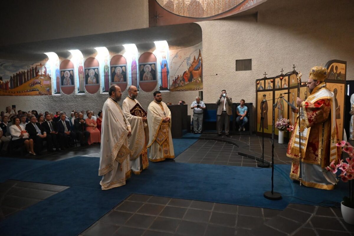 Της Αρχιερατικής Θείας Λειτουργίας προέστη ο Σεβασμιώτατος Μητροπολίτης Ελβετίας κ. Μάξιμος, συλλειτουργούντων των Σεβασμιωτάτων Μητροπολιτών Βελγίου κ. Αθηναγόρα, Ρόδου κ. Κυρίλλου, Ιταλίας κ. Πολυκάρπου, Νουβίας κ. Σάββα, Άρτης κ. Καλλινίκου και του Θεοφιλεστάτου Επισκόπου Ολύμπου κ. Κυρίλλου.