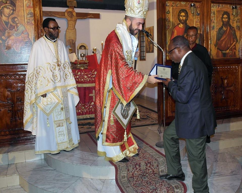 Προ του πέρατος της Ευχαριστιακής Συνάξεως, ο Θεοφιλέστατος προσέφερε τιμητική πλακέττα στην Εκκλησιαστική Επιτροπή του Καθεδρικού Ναού σε αναγνώριση της προσφοράς της Ενοριακής Κοινότητος Αγίου Δημήτριου, η οποία ανήγειρε πέντε καταστήματα προς ενοικίαση, από τα έσοδα των οποίων υποστηρίζεται σημαντικά το εν γένει ποιμαντικό έργο της τοπικής Εκκλησίας του Κονγκό και προχωρούν πλέον οι εργασίες κατασκευής του μονίμου Καθεδρικού Ναού.