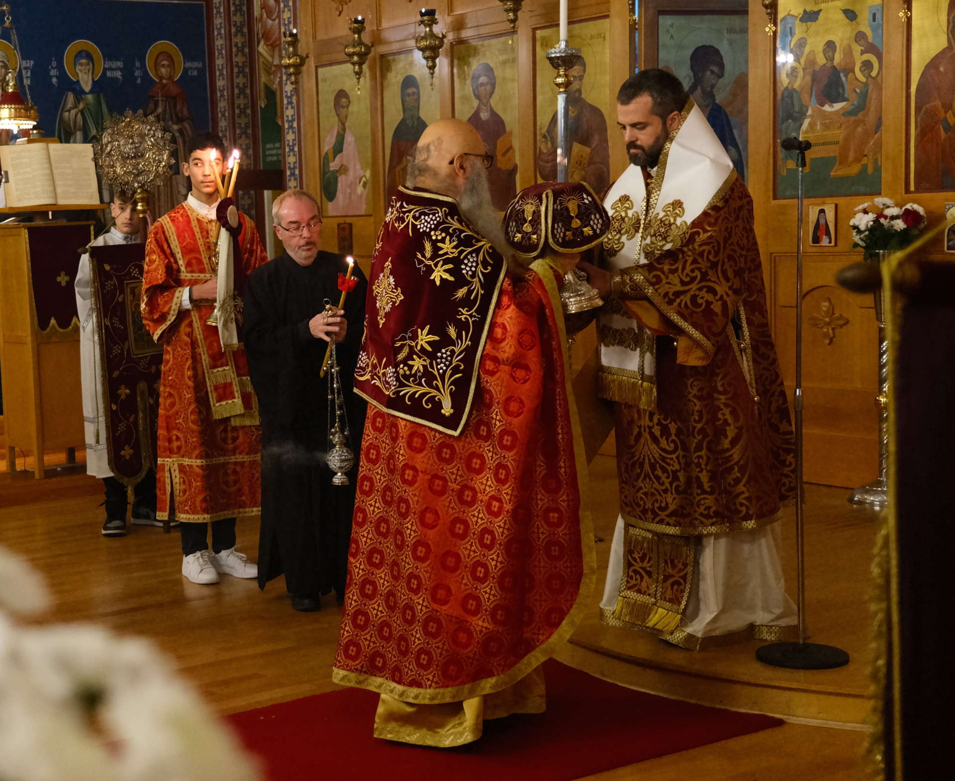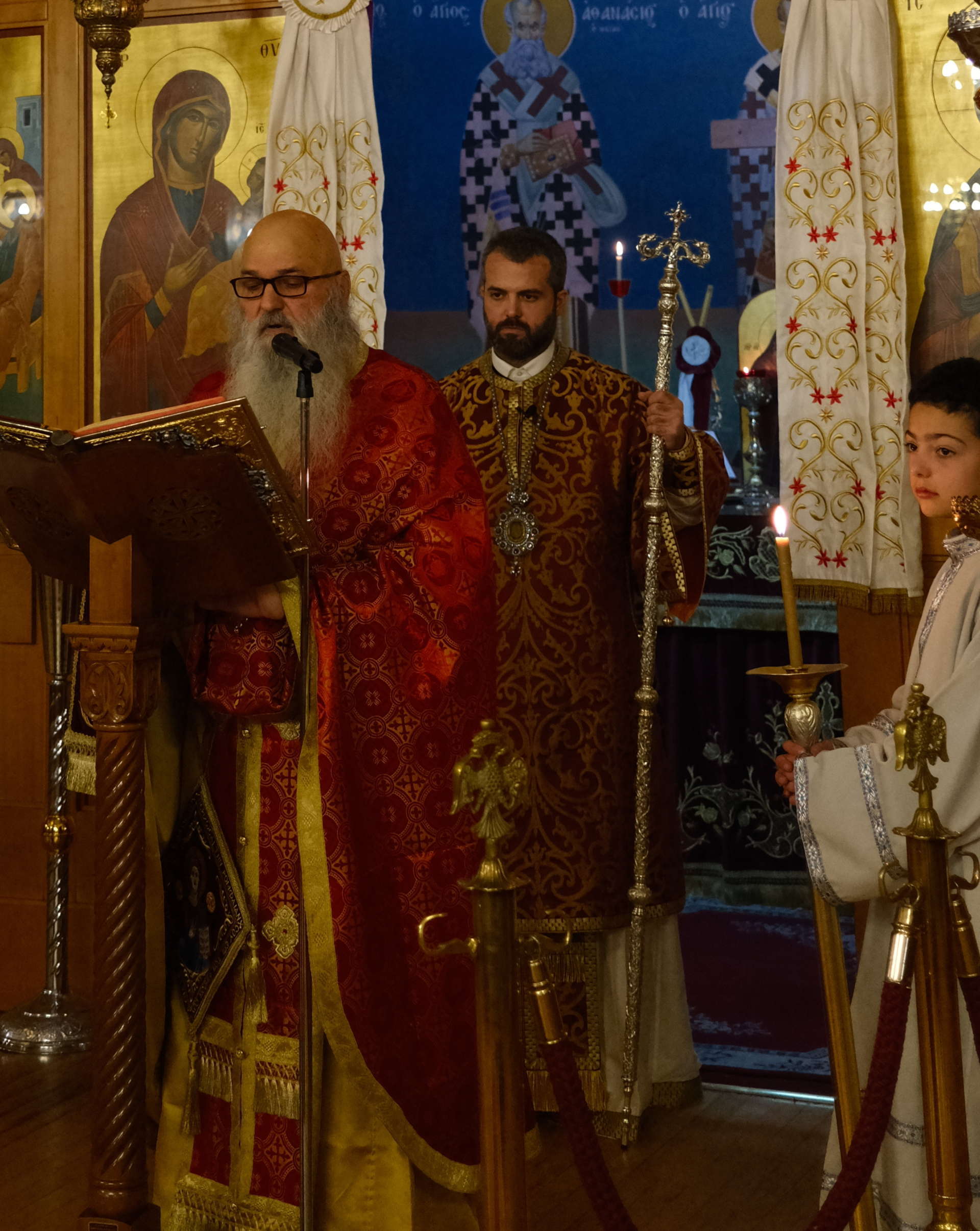 Μετά του Θεοφιλεστάτου συλλειτούργησε ο ιερατικώς Προϊστάμενος του Ναού, Πρωτοπρεσβύτερος κ. Χρήστος Στεφάνου.