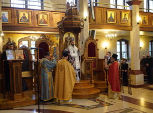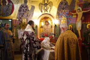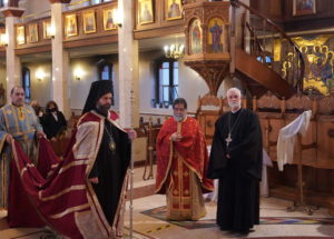 Ο Θεοφιλέστατος Επίσκοπος Μελιτηνής κ. Μάξιμος χοροστάτησε στον Όρθρο και προεξήρχε της πανηγυρικής Θείας Λειτουργίας, συμπαραστατούμενος από τους Πρωτοπρεσβυτέρους π. Κωνσταντίνο Γαριβαλδινό και π. Νικόλαο Κόκκινο.