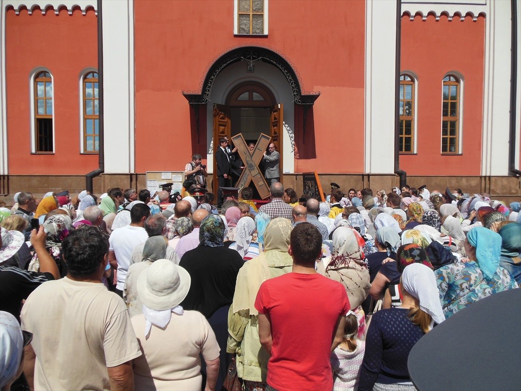 Στον Ναό του Αγίου Γεωργίου, στην πόλη Οντίσοβα στα περίχωρα της Μόσχας ο χρόνος της παραμονής του Σταυρού ολοκληρώθηκε, αλλά ο κόσμος που περίμενε έξω από τον Ναό να προσκυνήσει ήταν ακόμη χιλιάδες.