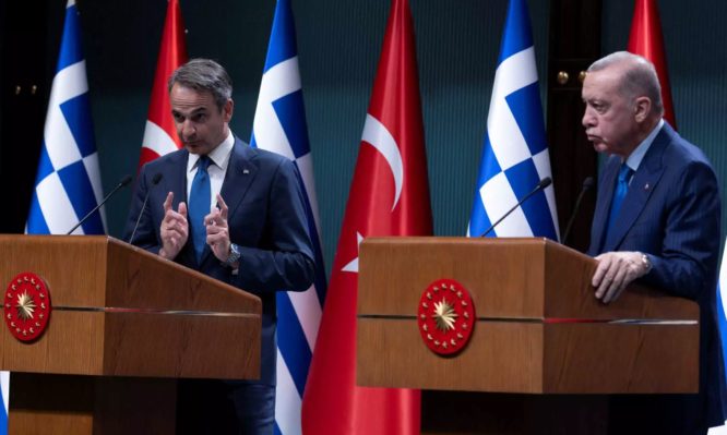 Ένα ενδιαφέρον μπρα ντε φερ ανάμεσα στον Έλληνα πρωθυπουργό Κυριάκο Μητσοτάκη και τον Τούρκο Πρόεδρο Ρετζέπ Ταγίπ Ερντογάν διεμείφθη την ώρα των κοινών τους δηλώσεων στην Άγκυρα.