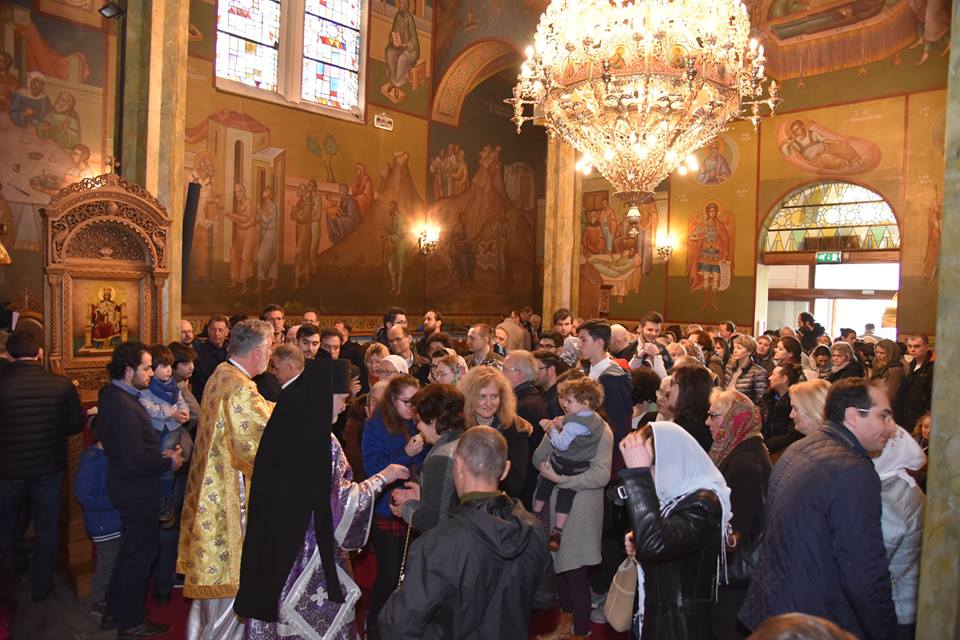 Στο τέλος της Ευχαριστιακής Συνάξεως ο Σεβασμιώτατος Μητροπολίτης Βελγίου κ. Αθηναγόρας εξέφρασε τη χαρά του για τη σύναξη αυτή όλων των Ορθοδόξων, γεγονός σημαντικό για την καλή συνεργασία των δικαιοδοσιών, την μυστηριακή ενότητα των πιστών, του σώματος της Εκκλησίας, λίγο πριν την μεγάλη γιορτή της χριστιανοσύνης, το Άγιο Πάσχα.