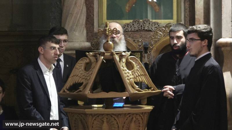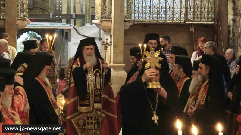 Τῆς Δοξολογίας ταύτης προεξῆρξεν ἡ Α.Θ.Μ. ὁ Πατήρ ἡμῶν καί Πατριάρχης Ἱεροσολύμων κ.κ. Θεόφιλος, συνιερουργούντων Αὐτῷ τῶν Ἀρχιερέων καί Ἱερομονάχων τῆς Ἁγιοταφιτικῆς Ἀδελφότητος, παρουσίᾳ τοῦ Γενικοῦ Προξένου τῆς Ἑλλάδος εἰς τά Ἱεροσόλυμα κ. Χρήστου Σοφιανοπούλου καί τῇ προσευχητικῇ συμμετοχῇ τῆς Ἑλληνικῆς παροικίας καί ἐντοπίων Ἱεροσολυμιτῶν.