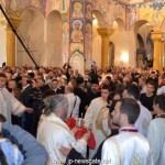 Μετά ταῦτα, τῆς λειτουργίας ἀπολυθείσης, ἡ Πατριαρχική Ἀρχιερατική καί Ἱερατική Συνοδεία ἐξῆλθε τοῦ Ναοῦ ἐν τῇ ἐνθέρμῳ καί ἐν χαρᾷ ἀνεκλαλήτῳ ὑποδοχῇ τοῦ λαοῦ, συνωστιζομένου, ἵνα λάβῃ τήν εὐλογίαν .