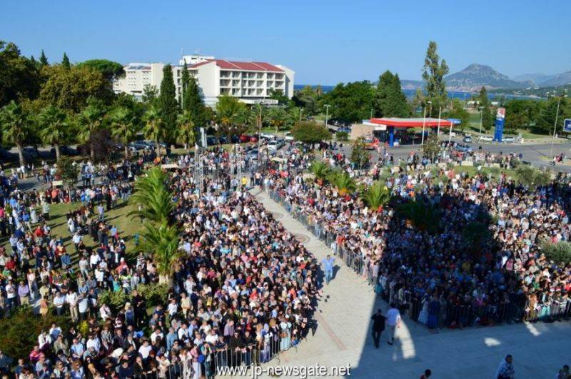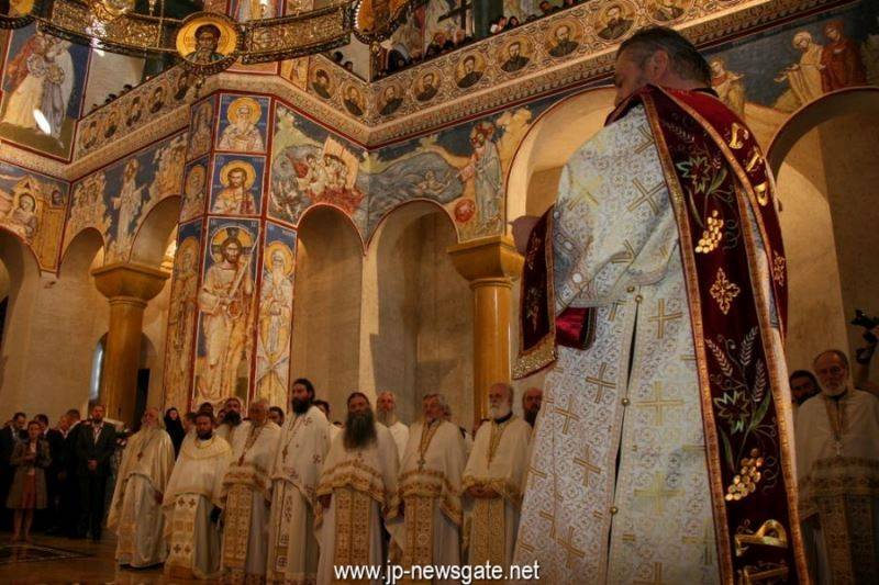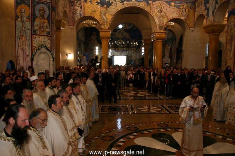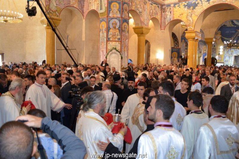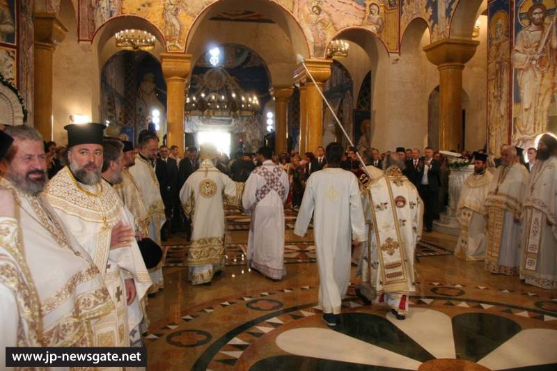 Τῆς τελετῆς καί τῆς θ. Λειτουργίας προεξῆρξεν ὁ Μακαριώτατος Πατήρ ἡμῶν καί Πατριάρχης Ἱεροσολύμων κ.κ. Θεόφιλος, συλλειτουργούντων Αὐτῷ τοῦ Μακαριωτάτου Πατριάρχου Σερβίας κ. Εἰρηναίου, Ἀρχιεπισκόπου Ἀλβανίας κ. Ἀναστασίου καί τῶν ἀντιπροσώπων τῶν ἄλλων Ἐκκλησιῶν, τοῦ Οἰκουμενικοῦ Πατριαρχείου καί ἄλλων, παρουσίᾳ ἐκπροσώπων τῆς Πολιτείας τοῦ Μαυροβουνίου, ἄλλων Χριστιανικῶν δογμάτων καί τῇ συλλειτουργίᾳ πολλῶν Ἀρχιερέων, πλειάδος Ἱερέων καί πλήθους πιστοῦ λαοῦ καί ψαλμῳδίᾳ βυζαντινῇ καί εὐρωπαϊκῇ χορῳδίᾳ, πάντων τούτων συντελούντων εἰς τήν βαθεῖαν βίωσιν τοῦ μυστηρίου τῆς Θείας Εὐχαριστίας, συνεχείας τοῦ Μυστικοῦ Δείπνου καί τοῦ Σταυροῦ καί τῆς Ἀναστάσεως τοῦ Κυρίου ἡμῶν Ἰησοῦ Χριστοῦ πρός σωτηρίαν ἡμῶν καί δόξαν τοῦ ἐν Τριάδι Θεοῦ ἡμῶν.