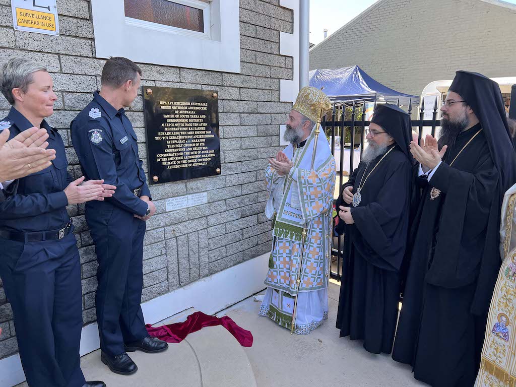 Με εκκλησιαστική μεγαλοπρέπεια και σε κλίμα πνευματικής χαράς και βαθειάς συγκινήσεως, πραγματοποιήθηκε το Σάββατο, 24 Ιουνίου, στο προάστιο SouthYarra της Μελβούρνης, η τελετή Εγκαινίων του Ιερού Ναού των Αγίων Κωνσταντίνου και Ελένης. Της τελετής προέστη ο Σεβασμιώτατος Αρχιεπίσκοπος Αυστραλίας κ.κ. Μακάριος, ο οποίος στη συνέχεια προεξήρχε και της Θείας Λειτουργίας,πλαισιούμενος από τους Αρχιεπισκοπικούς Επιτρόπους Μελβούρνης και Northcote, Θεοφιλεστάτους Επισκόπους Σωζοπόλεως κ. Κυριακό και Κερασούντος κ. Ευμένιο, και από κληρικούς των δύο Αρχιεπισκοπικών Περιφερειών της Βικτώριας.