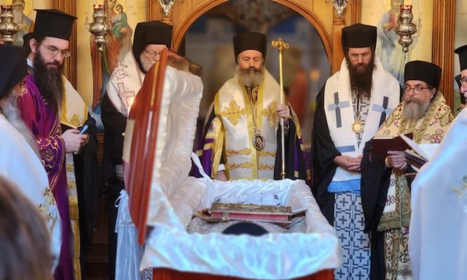 Σημείωσε, μάλιστα, ότι έχουν υπάρξει και Άγιοι της Εκκλησίας μας, οι οποίοι, για ορισμένο χρονικό διάστημα, είχαν παύσει να μνημονεύουν τον Οικουμενικό Πατριάρχη. Όμως, στη συνέχεια, ήλθαν εις εαυτόν και επανεντάχθηκαν στο σώμα της κανονικής Εκκλησίας, συνειδητοποιώντας πως η σύνδεση με τον εκάστοτε κανονικό Επίσκοπο ή Αρχιεπίσκοπο συντελεί στον αγιασμό κατά τους ιερούς κανόνες, ενώ, στον αντίποδα, το σχίσμα συντελεί στον δαιμονισμό. Τούτων δοθέντων, ο Σεβασμιώτατος διαβεβαίωσε πως ο π. Γεώργιος «φεύγει από αυτή τη ζωή, έχοντας τη σφραγίδα της αγιότητος».