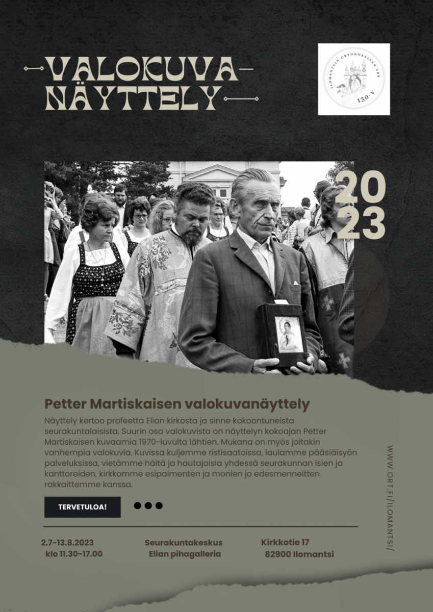 Η έκθεση μιλά για την εκκλησία του Προφήτη Ηλία και τους ενορίτες που συγκεντρώθηκαν εκεί. Οι περισσότερες φωτογραφίες της έκθεσης είναι τραβηγμένες από τον Petter Martiskainen και οι παλαιότερες είναι της δεκαετίας του 1970. Υπάρχουν και κάποιες παλιότερες φωτογραφίες. Στις εικόνες, περπατάμε σε πομπές, τραγουδάμε στις λειτουργίες του Πάσχα, γιορτάζουμε γάμους και κηδείες μαζί με τους πατέρες και τους ιεροψάλτες του εκκλησιάσματος, τους ποιμένες της εκκλησίας μας και πολλά αγαπημένα μας πρόσωπα που έχουν ήδη πεθάνει.