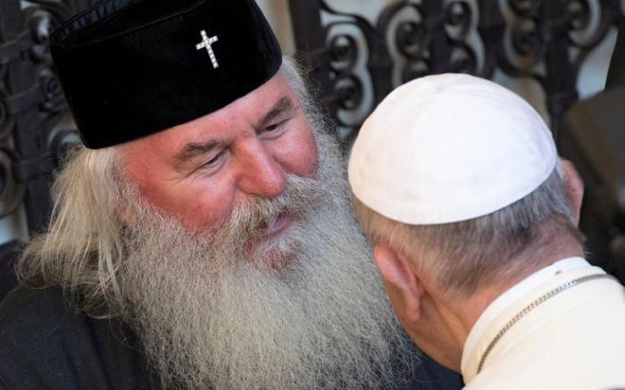 Εναγκαλισμός και ασπασμός Οικουμενικού Πατριάρχη – Πάπα