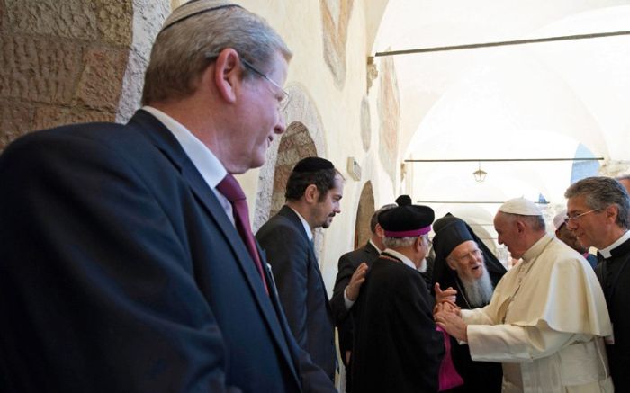 Κατά το γεύμα που προσέφερε η κοινότητα του Αγίου Αιγιδίου – που συνδιοργανώνει την σημερινή ημέρα προσευχής- ο Πάπας Φραγκίσκος αγκάλιασε θερμά τον Οικουμενικό Πατριάρχη Βαρθολομαίο, ο οποίος συμμετέχει στην σημερινή πρωτοβουλία.