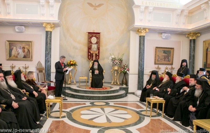 Μετά τη δοξολογία, ακολούθησε εκδήλωση στο Πατριαρχείο με προσφωνήσεις προς τον κ. Θεόφιλο από τον Γέροντα Αρχιγραμματέα Αρχιεπίσκοπο Κωνσταντίνης κ. Αρίσταρχο, εκ μέρους της Ιεράς Συνόδου, και από τον πρόξενο κ. Γεώργιο Ζαχαριουδάκη.