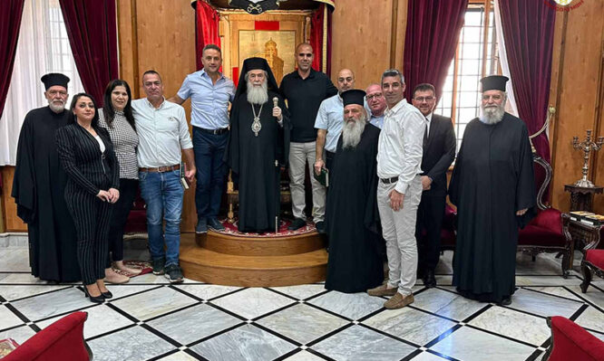 Τήν πρωΐαν τοῦ Σαββάτου, 22ας Σεπτεμβρίου / 5ης Ὀκτωβρίου 2024, ἐπεσκέφθη τήν Α.Θ.Μ. τόν Πατέρα ἡμῶν καί Πατριάρχην Ἱεροσολύμων κ.κ. Θεόφιλον ὁ Ἐνοριακός Σύλλογος (Τζαμαΐγιε) τῆς Κοινότητος Ἰόππης ὑπό τήν ἡγεσίαν τοῦ Σεβασμιωτάτου Ἀρχιεπισκόπου Ἰόππης κ. Δαμασκηνοῦ.