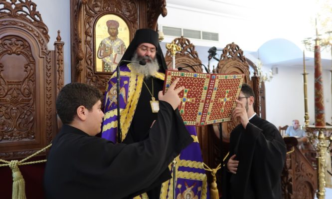 Τον Θείο Λόγο κήρυξε εμπνευσμένα και βαθυστόχαστα ο Θεοφιλέστατος Επίσκοπος Νεαπόλεως κ. Πορφύριος. Τα ιερά αναλόγια κόσμησαν η χορωδία της Μητροπόλεως μας “Ρωμανός ο Μελωδός” υπό τη διεύθυνση του Πρωτοπρεσβυτέρου Νικόλαου Λυμπουρίδη.