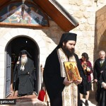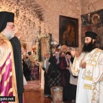 Μετά τήν θ. Λειτουργίαν, ὁ καθηγούμενος καί ἀνακαινιστής τῆς Ἱερᾶς Μονῆς τῶν Ἀρχαγγέλων καί Γραμματεύς τῆς Ἁγίας καί Ἱερᾶς Συνόδου Σεβασμιώτατος Ἀρχιεπίσκοπος Λύδδης κ. Δημήτριος ἐδεξιώθη τήν Ἀρχιερατικήν Συνοδείαν καί τό ἐκκλησίασμα εἰς τό ἡγουμενεῖον.