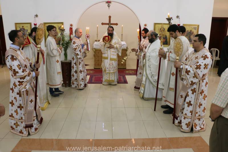 Μετά τήν Θ. Λειτουργίαν ἐγένετο λιτανεία ἐκ τοῦ Ἱεροῦ Ναοῦ πρός τό Ἐπισκοπεῖον καί παρετέθη κέρασμα εἰς τήν αἴθουσαν ἐκδηλώσεων.