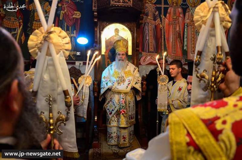 Εἰς τόν Ἱερόν Ναόν τοῦτον κατά τήν ὡς ἄνω ἡμέραν ἐτελέσθη ἡ θεία Λειτουργία, προεξάρχοντος τῆς Α.Θ.Μ. τοῦ Πατρός ἡμῶν καί Πατριάρχου Ἱεροσολύμων κ.κ. Θεοφίλου, συλλειτουργούντων Αὐτῷ τοῦ Πατριαρχικοῦ Ἐπιτρόπου Σεβασμιωτάτου Μητροπολίτου Καπιτωλιάδος κ. Ἡσυχίου, τοῦ ἐν Γάζῃ Πατριαρχικοῦ Ἐπιτρόπου Σεβασμιωτάτου Ἀρχιεπισκόπου Τιβεριάδος κ. Ἀλεξίου καί τοῦ Γέροντος Ἀρχιγραμματέως Σεβασμιωτάτου Ἀρχιεπισκόπου Κωνσταντίνης κ. Ἀριστάρχου καί τοῦ ἐν Γάζῃ ἐφημερίου τοῦ Ἱ. Ναοῦ τοῦ Ἁγίου Πορφυρίου Ἀρχιμανδρίτου π. Ἀμφιλοχίου, τοῦ Ἀρχιδιακόνου π. Εὐλογίου καί τοῦ διακόνου π. Μάρκου, ψάλλοντος βυζαντινῷ καί κατανυκτικῷ τῷ τρόπῳ ὅλου τοῦ εὐσεβοῦς ἐκκλησιάσματος, προσευχομένου καί ἐν κατανύξει μετέχοντος τῆς θείας Λειτουργίας.