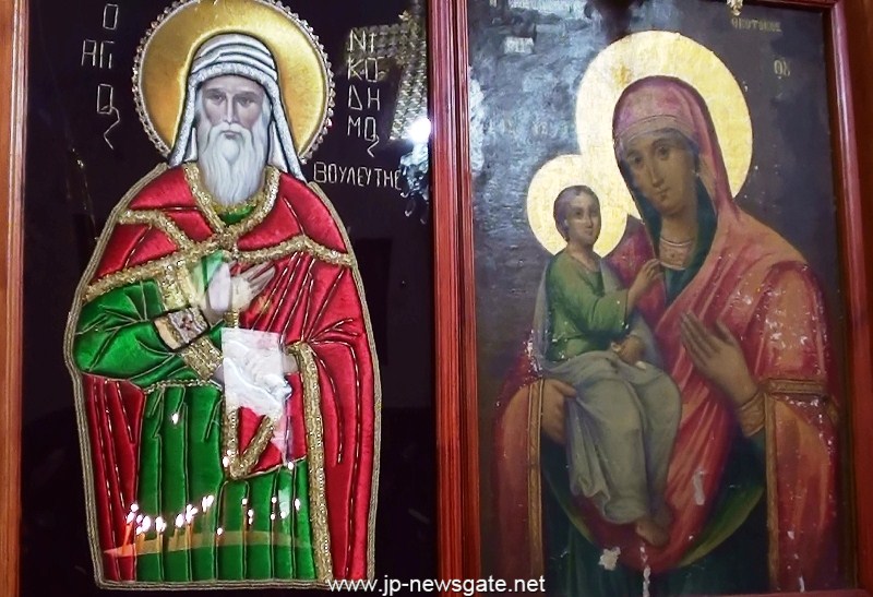 Κατά τη διάρκεια της Θείας Λειτουργίας, προσήλθε προς προσκύνηση η Α.Θ.Μ. Πατριάρης Ιεροσολύμων κ.κ Θεόφιλος, συνοδευόμενος απο Αγιοταφίτες Πατέρες.